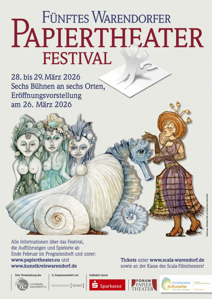 Bei unserem kleinen Jubiläum haben Sie wieder Gelegenheit, in der Warendorfer Altstadt zeitgenössisches und nostalgisches Papiertheater zu erleben. An ausgewählten kulturellen Orten wie dem Historischen Tapetensaal im klassizistischen Bürgerhaus, im Westpreußischen
