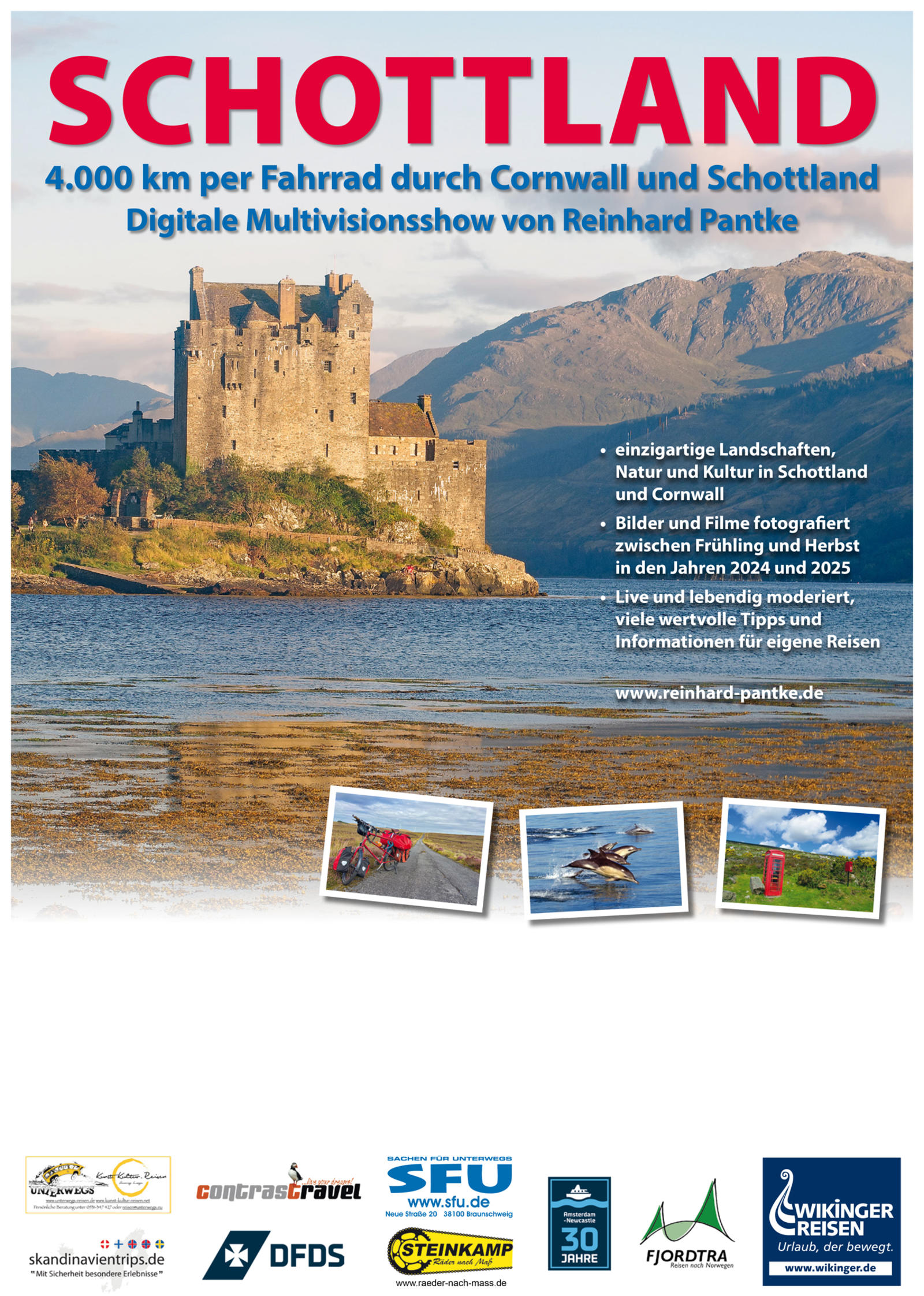 In seiner neuesten digitalen Multivisionsshow zeigt der Globetrotter Reinhard Pantke Impressionen seiner Fahrradtouren, in denen er Großbritannien von Süden nach Norden durchquerte.